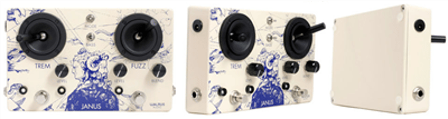 The Janus is a true bypass, dual joystick controlled Tremolo/Fuzz pedal that allows you to create a landscape of distorted textures. Both the Tremolo and the Fuzz can be isolated and used alone, but can also be used together in series creating thick textures with a lot of movement. Each joystick has a separate X and Y axis that has designated controls.