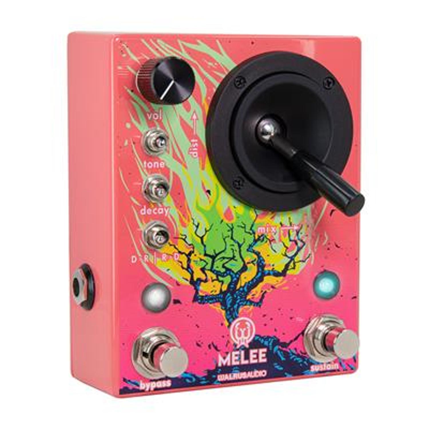 SPECSThe Melee comes coated in a matt black enclosure.The die-cast enclosure’s exact size is 3.62” x 4.79” x 3.14” (including joystick height).Three bypass modes, DSP, DSP+True, True BypassPower requirements are 9VDC, center negative (200mA minimum).The use of an isolated power supply is recommended for powering all Walrus Audio Pedals.Daisy chain power supplies are not recommended.Power supply not included.