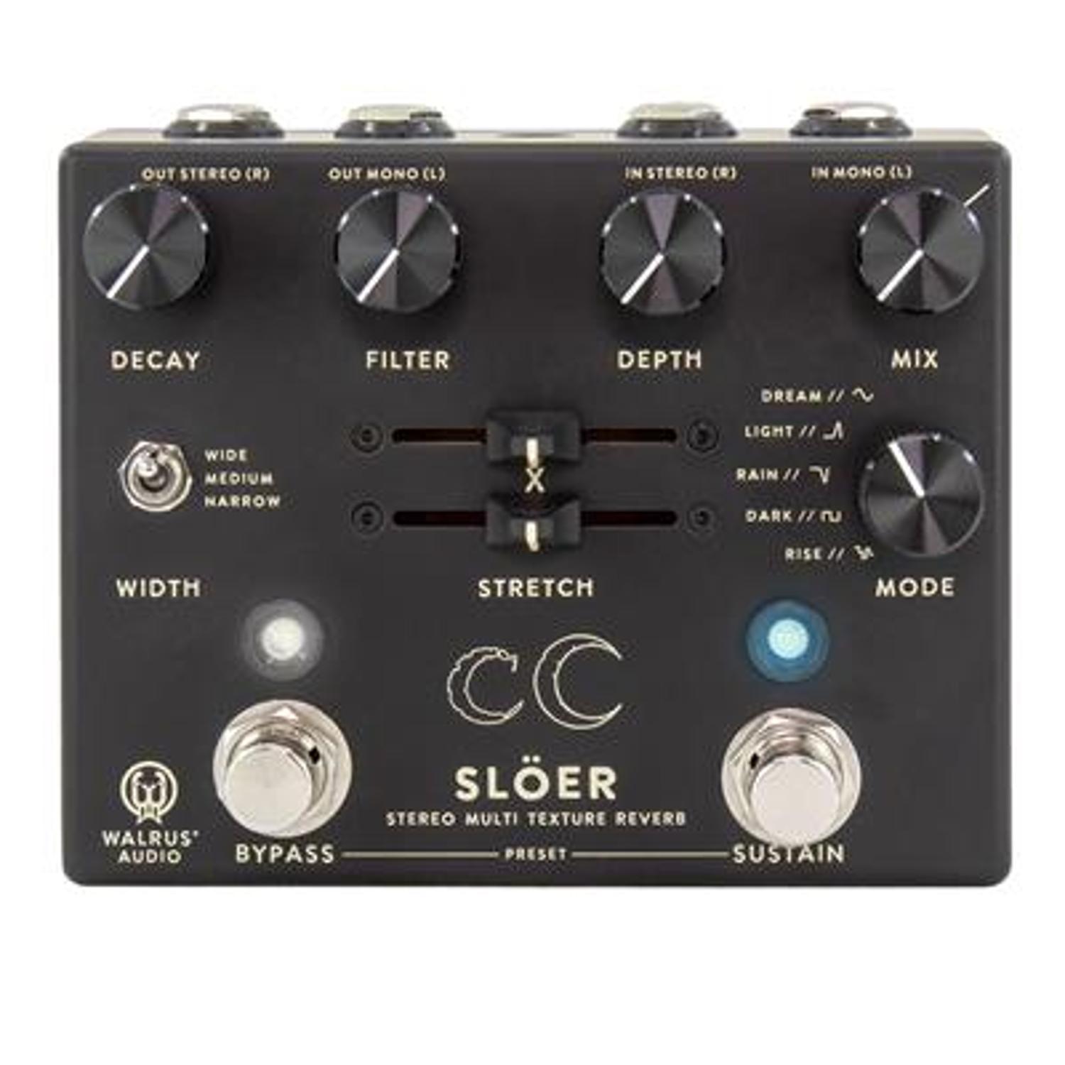 The Slöer can run in trails or no trails mode. In trails mode, when you turn the pedal off, the reverb decay dies off naturally. In no trails mode, the decay is abruptly cut off when you turn the pedal off. To toggle between either mode, hold down the bypass switch for 1 second while applying power to the pedal. Unplug power and repeat to toggle to the other mode.