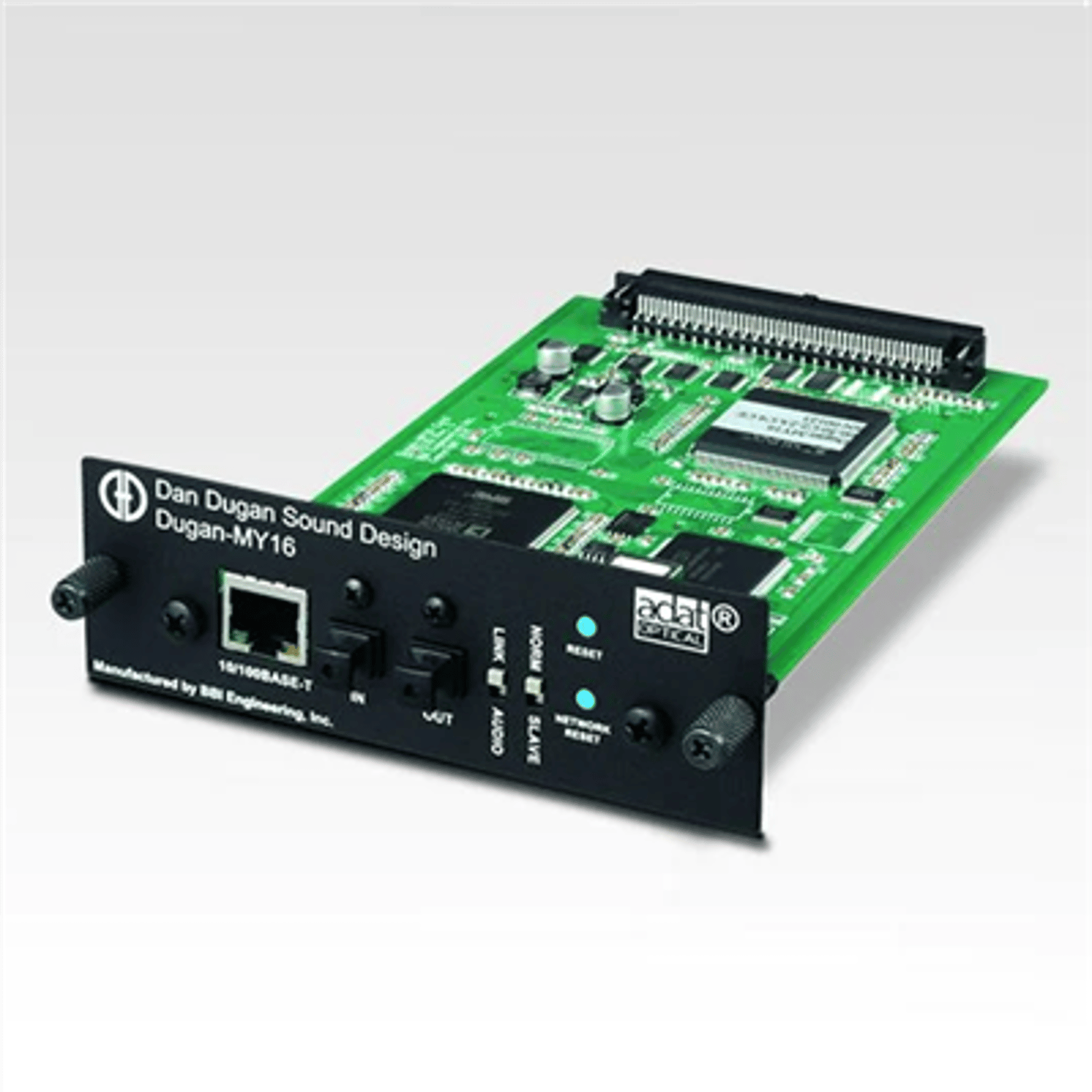 The Dugan-MY16 is an automatic mixing card for Yamaha digital mixers that employs advanced technology from Dan Dugan Sound Design. When multiple microphone inputs need to be mixed without a script or pre-planned gain changes, the Dugan-MY16 can automatically optimize gain distribution over multiple faders so that the engineer is free to concentrate on the quality of the mix, rather than being chained to the faders. It’s almost like having a talented assistant engineer keeping track of fader levels, lightening the overall workload and maximizing efficiency.