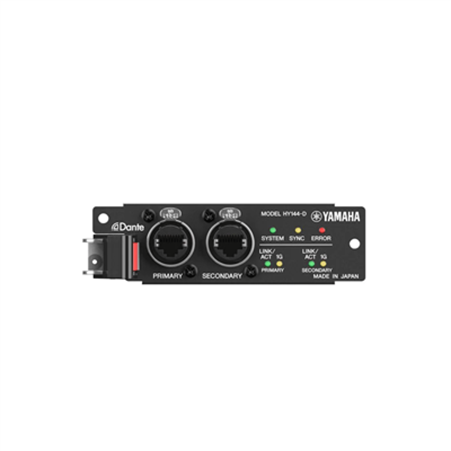 The HY144-D is a digital I/O card that is compatible with Dante digital audio networks. Up to 144 simultaneous input and output channels at 96 kHz/32 bits are supported.