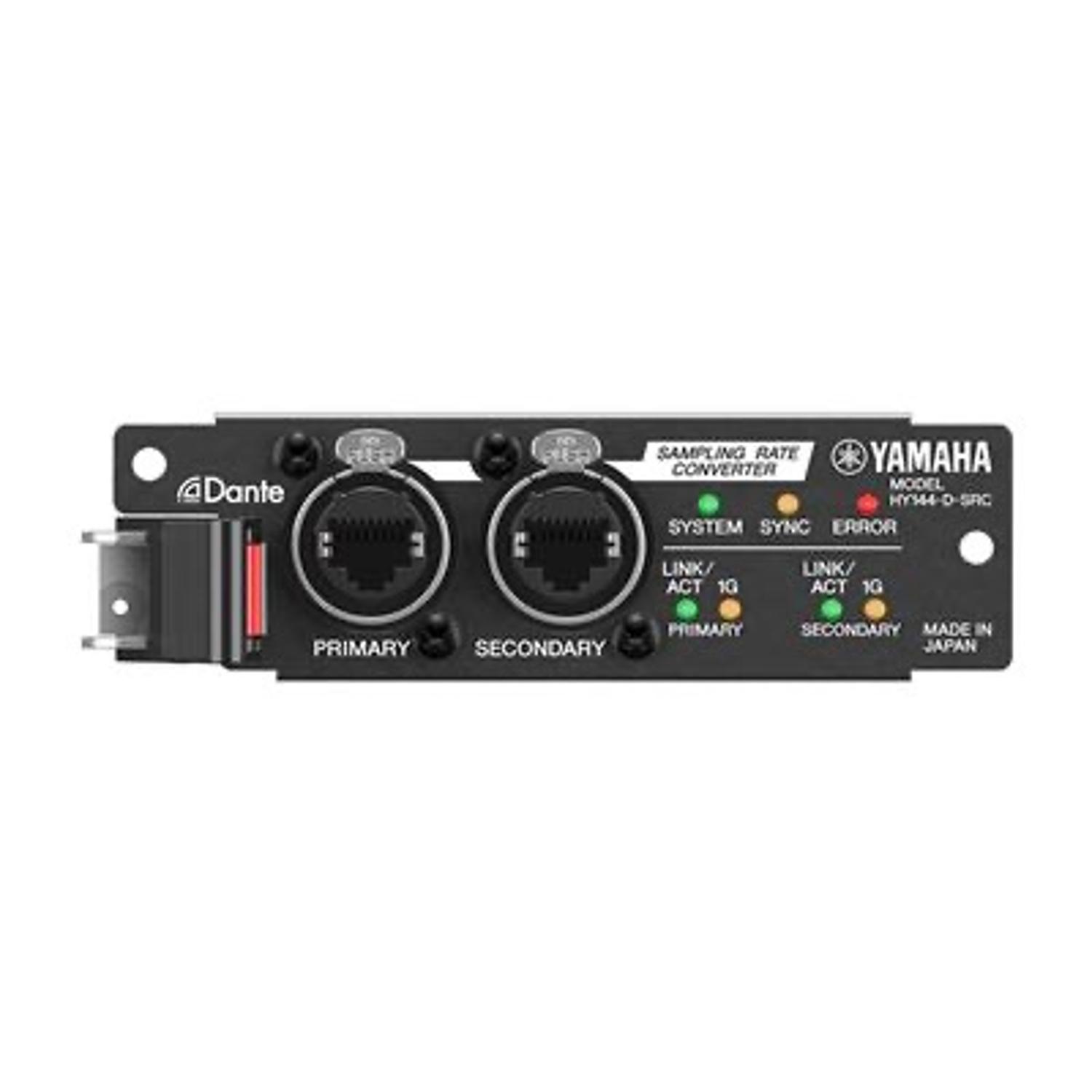 The HY144-D-SRC audio interface card supports the Dante audio network protocol, handling up to 144 input and 144 output channels of 96 kHz/32-bit digital audio. Onboard sample rate conversion allows interconnection between devices operating at different sampling rates. Five operational modes can be selected via firmware.